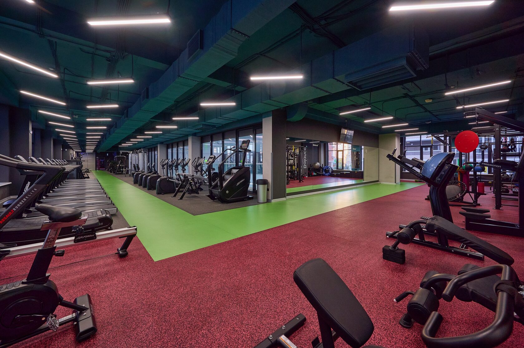 Премиальное оборудование Freemotiom, Life Fitness - беговые дорожки, эллиптические кросс-тренажеры, тренажеры подъёма по ступеням, велотренажёры и даже оборудование, имитирующее движения при гребле и лыжной гонке.